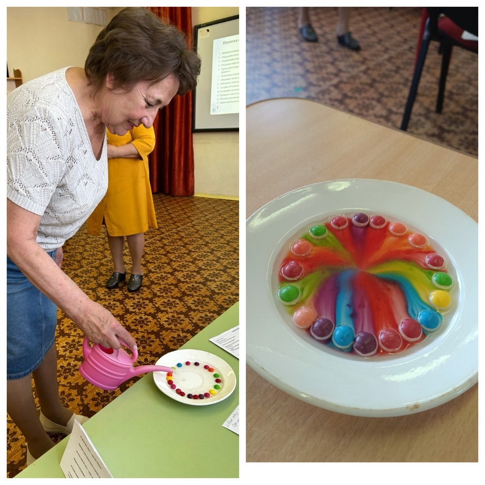 Теоретическую часть открыла заместитель заведующего Наталья Владимировна, которая рассказала о возрастных особенностях детского экспериментирования и о том, как правильно организовать исследовательскую деятельность в каждой возрастной группе.
