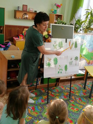17 марта дети средней группы, вместе с уточкой Русей познакомились со смешенными лесами. Сначала вместе с Русей, дети разглядывали карту, чтобы понять, где же эти удивительные леса располагаются. Мы узнали, что в них растут как стройные хвойные деревья, так и раскидистые лиственные, создавая неповторимый пейзаж. Выяснили что в этих лесах много света, поэтому там разнообразные виды растений, грибов и ягод. Узнали и закрепили какие животные там живут: зубры, олени, рыси, леопарды, медведи.