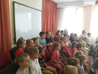 Дети группы 10 совместно с воспитателями и музыкальным руководителем подготовили и показали спектакль «Теремок». Главный герой «Светофор» объяснял правила поведения шустрому зайчонку, неуклюжему медведю – не играть на проезжей части. С лисичкой, ежиком и мышкой закрепил название дорожных знаков.