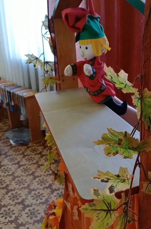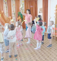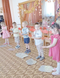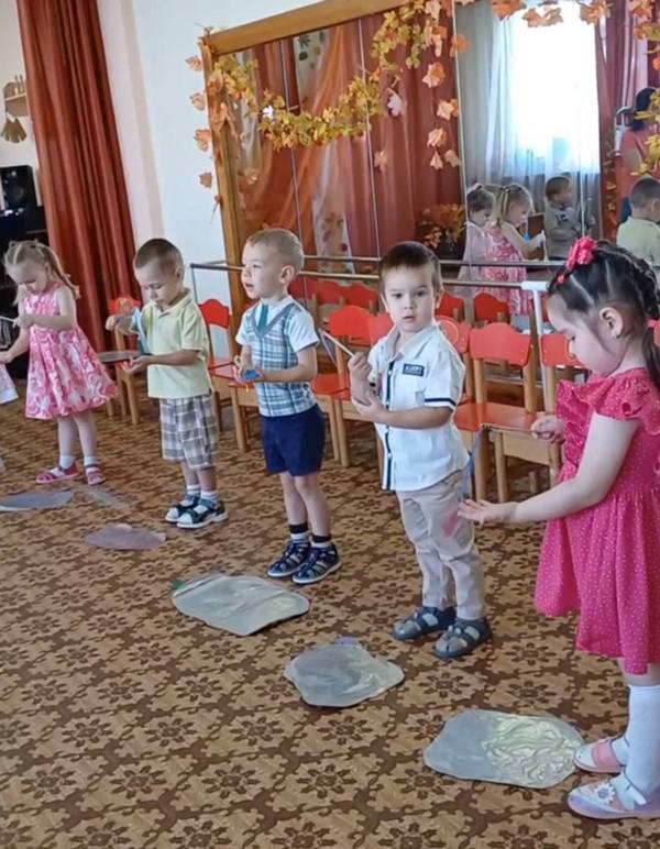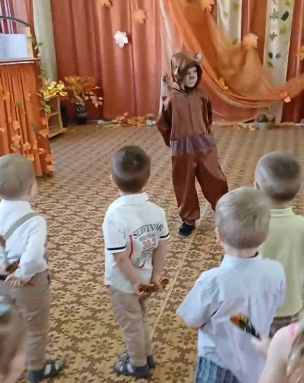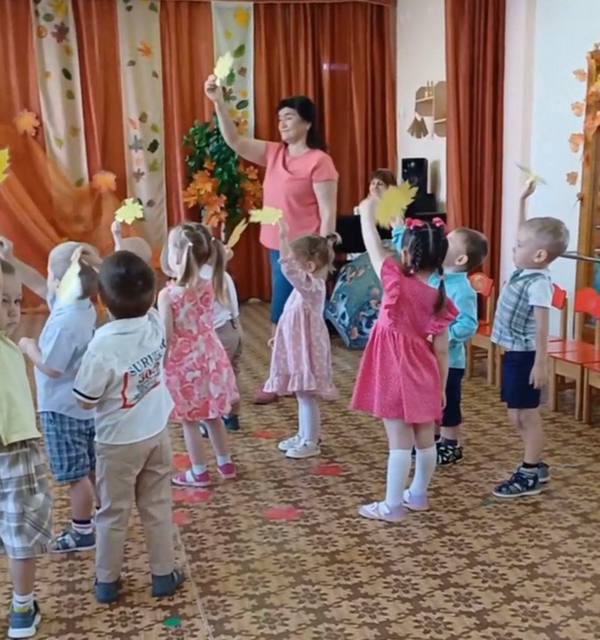 Исполнили танец «Капельки», поиграли с листочками.
